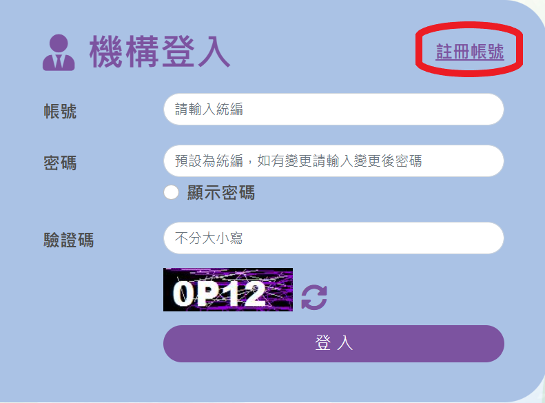 - 帳號:機構統編。