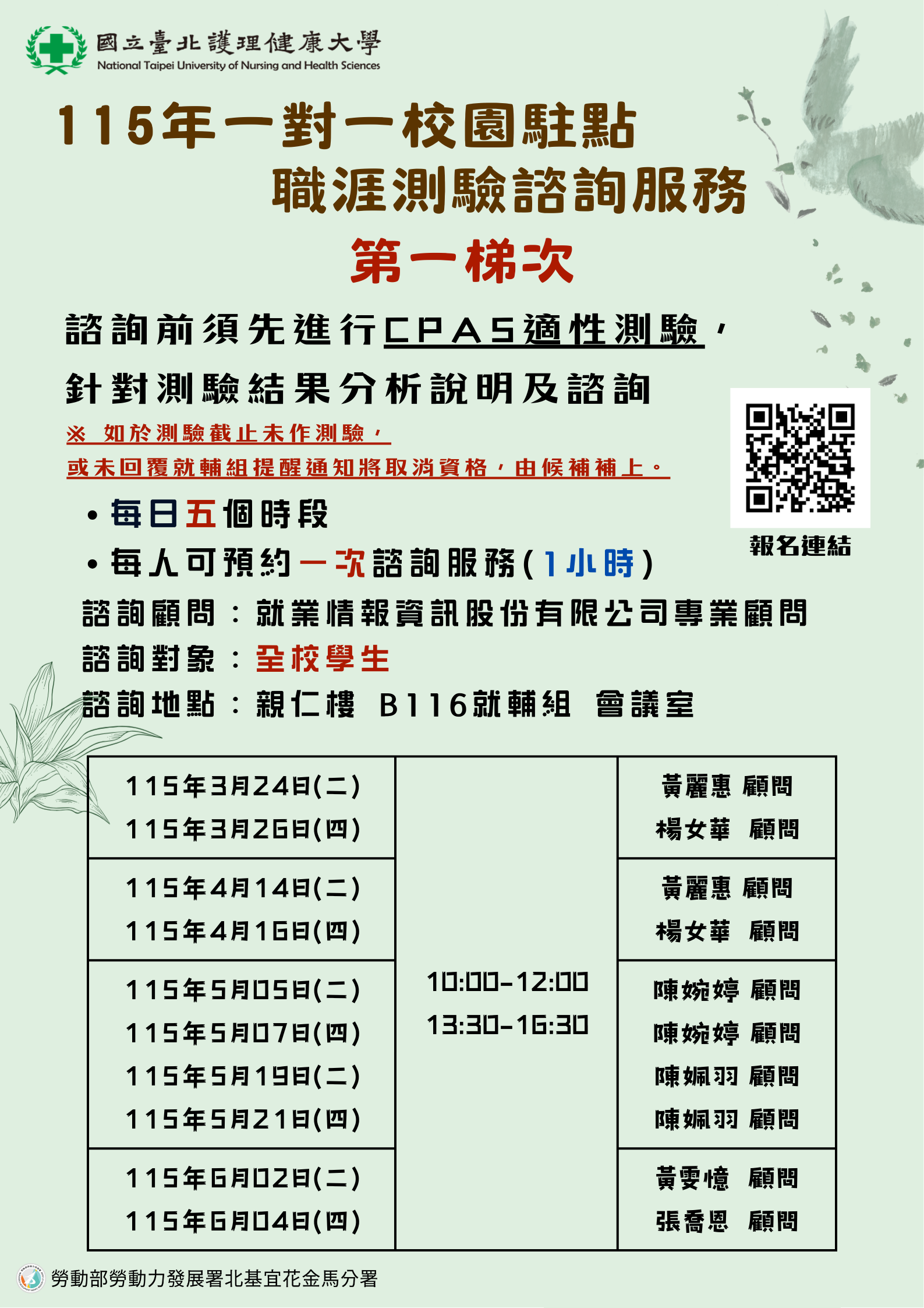 115年(第一梯) 一對一校園駐點職涯測驗諮詢服務 開始囉!