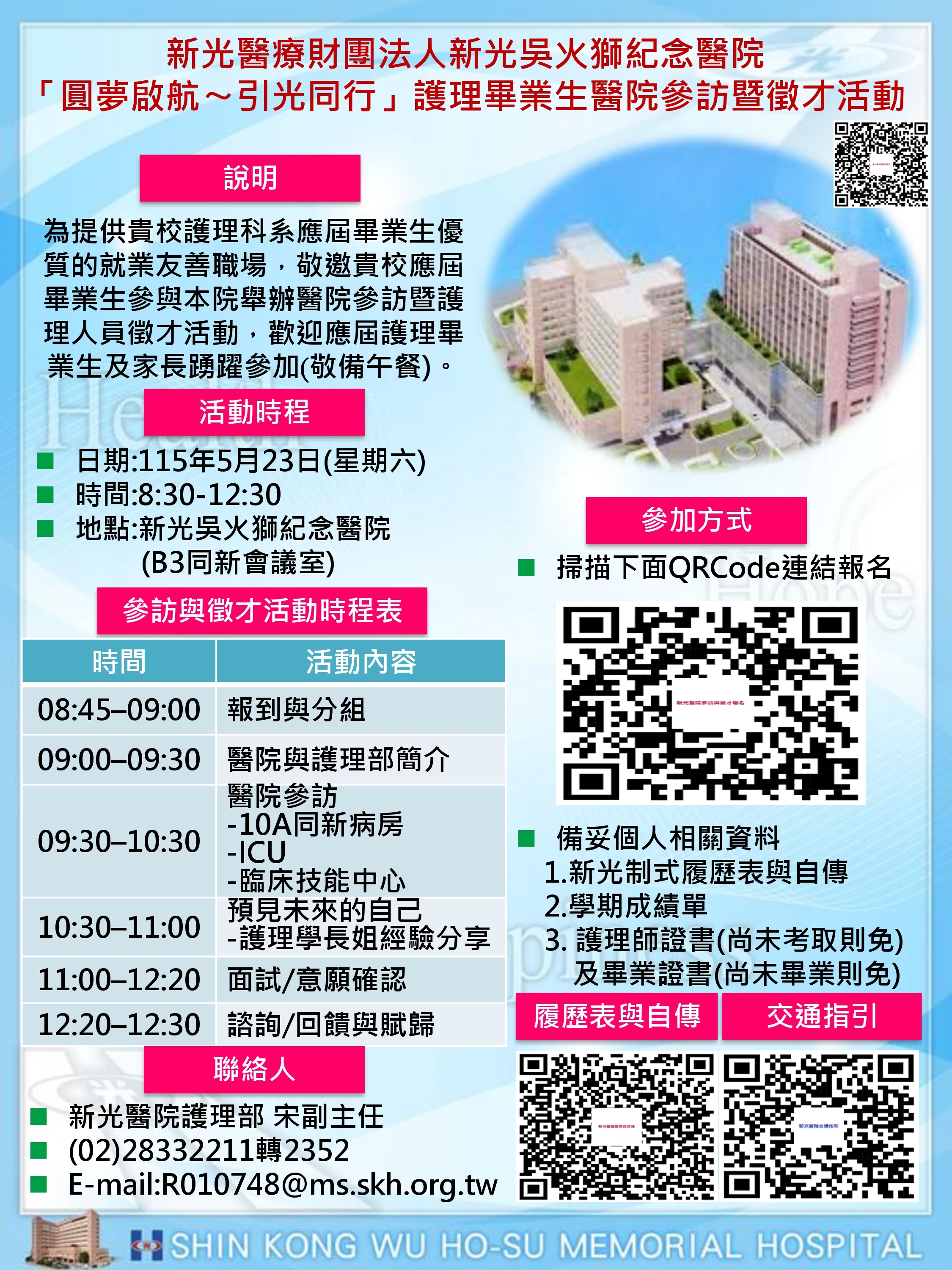 【招募】新光吳火獅紀念醫院_護理畢業生參訪暨徵才活動